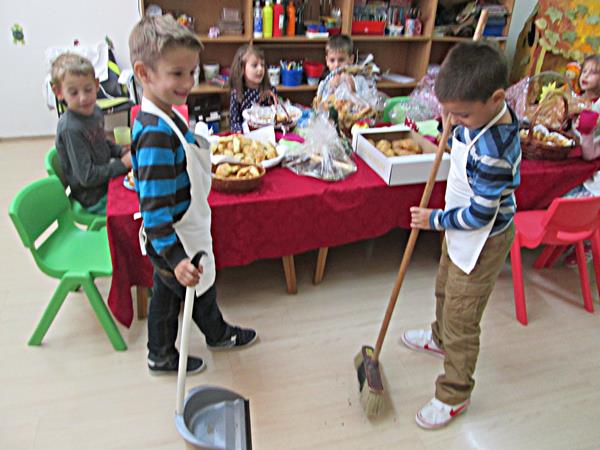 Za početak trebalo se pripremiti za Dane kruha, ali prije toga smo obilježili i Dan jabuke. Jabuku svi volimo, o njoj sve znamo, a kolačići od jabuka napravljeni našim ručicama, bili su zaista izvrsni...Cijeli tjedan, prije samog blagoslova kruha, u našoj skupini mirisalo je na sve strane: kukuruzni, raženi, Gitin kruh, ukusni uštipci...sve je to bilo naših ruku djelo. Nakon što smo se osladili, ponudili smo ih i našim roditeljima. Don Tiho nam je blagoslovio naše pekarske radove: kruh, kolačiće i peciva, a mi smo nakon blagoslova krenuli među naše sumještane i od srca ih počastili.