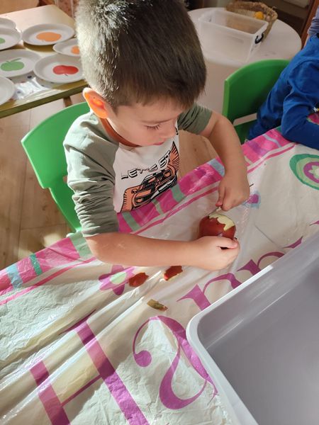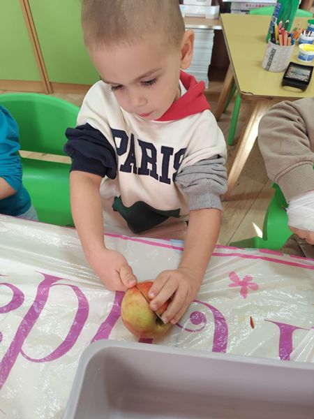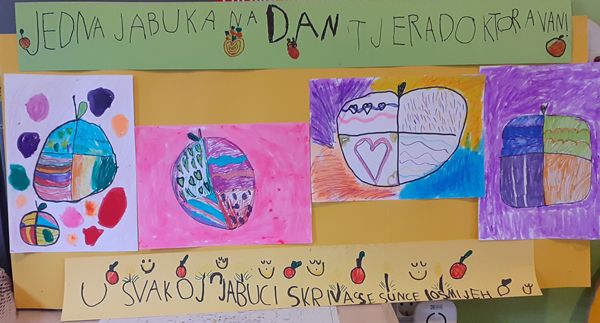 Obilježili smo Dan jabuka kroz razne aktivnosti. Djeca su istraživala boje, mirise, okuse i dijelove jabuka. Likovno su se izražavala crtajući i slikajući te pjevajući pjesmice. Uz pomoć mama i odgojiteljica jabuke su gulili, rezali i ribali pa napravili kolače kojima su se i osladili.