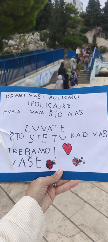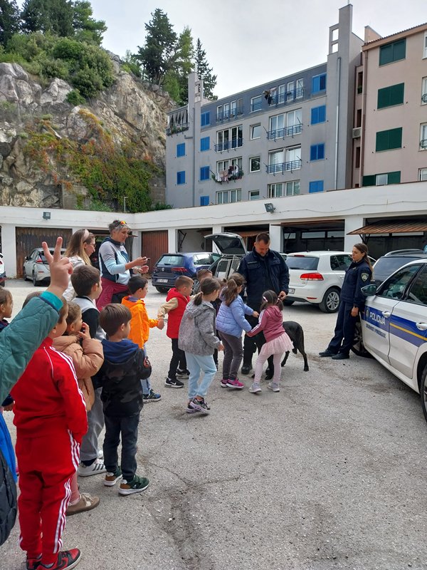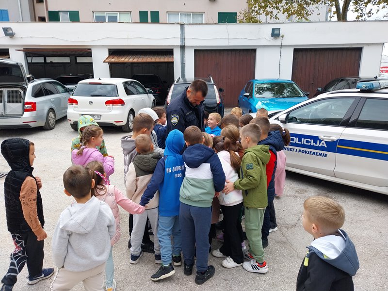 Obilježili smo Dan policije i posjetili Policijsku postaju Ploče gdje su im policijski službenici pripremili zanimljiv i poučan program. Djeca su imala priliku upoznati policijskog psa, a posebno ih je razveselila mogućnost da sjednu na policijski motor i uđu u policijski automobil, što je za njih bilo nezaboravno iskustvo. Policijski službenik upoznao je djecu s važnošću otiska prsta te im pokazao kako se pomoću njega može pronaći počinitelj kaznenog djela. Na djeci primjeren način približio im je važnost policijskog posla i sigurnosti u zajednici.