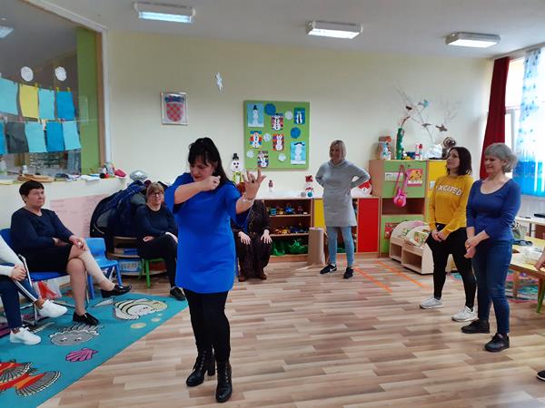 Ugostili smo gospođu Zvjezdanu Čagalj dramsku pedagoginju. Odgojiteljicama je održala stručnu edukaciju na temu „Dramski odgoj u odgojno-obrazovnom procesu“. Putem raznih vježbi i kroz praktičan rad odgojiteljice su stvarale predstavu od ideje do interpretacije.