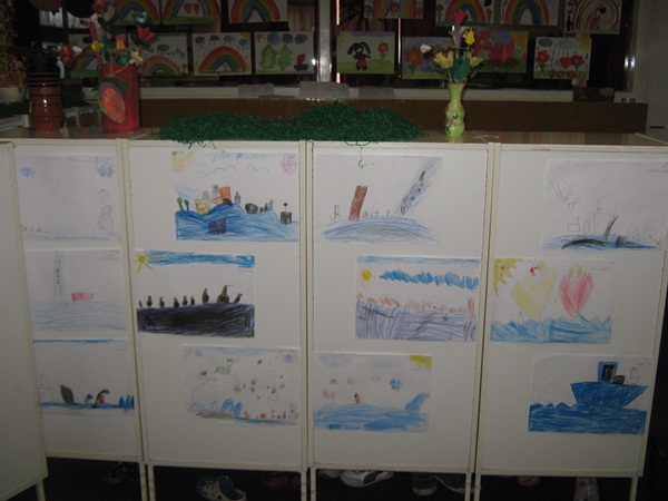 Uz govorne aktivnosti, djeca su rado sudjelovala i u likovno izražavanju. Oduševila ih je tehnika „mokro na mokro“ i dugo su se zadržali u toj aktivnosti. Svoj doživljaj priča prenosili su na papir i tako su nastajali veoma zanimljivi crteži koje smo izlagali na panoe.