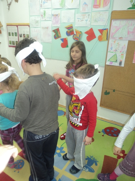 - razvoj empatije kroz igru „Slijepi miš“, „Budi moje oko“, „Na jednoj nozi“.
