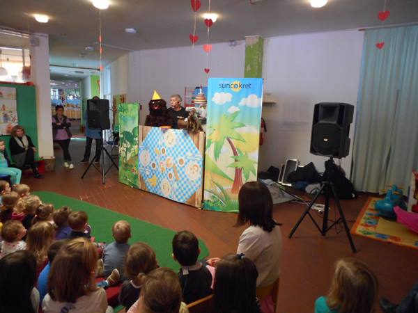 Nakon velikog uspjeha prvog lutkarskog mjuzikla Studija Suncokret: «FESTIVAL ŽIVOTINJSKOG CARSTVA», u vrtiću smo povodom Dana vrtića ponovo organizirali dolazak Studija Suncokret iz Splita, idejnog osnivača i voditelja Duška Mucala, koji je ujedno autor priče i songova novog edukativnog lutkarskog mjuzikla - «SLON BON TON».