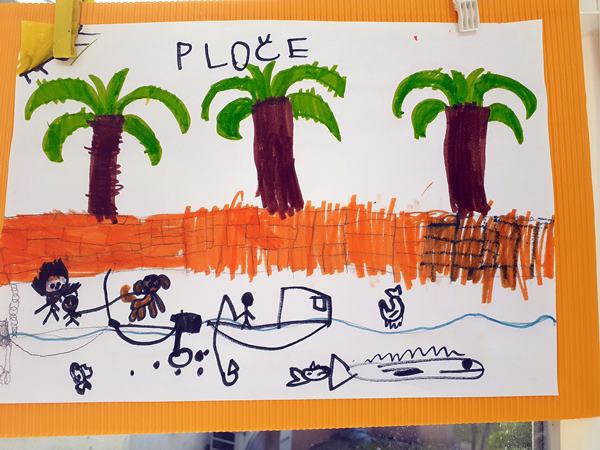 Obilježili smo Dan grada i Dan državnosti raznim aktivnostima kroz cijeli tjedan. Prošetali smo rivom do oslikanog kamena s motivom grba grada pored mosta i imenovali smo dijelove grada i ulice. Crtali smo grb, rivu, crkvu i zgrade. Gledali smo kartu RH, tražili grad Ploče i naučili da je glavni grad Zagreb. Slušali smo himnu i slikali zastavu temperom.