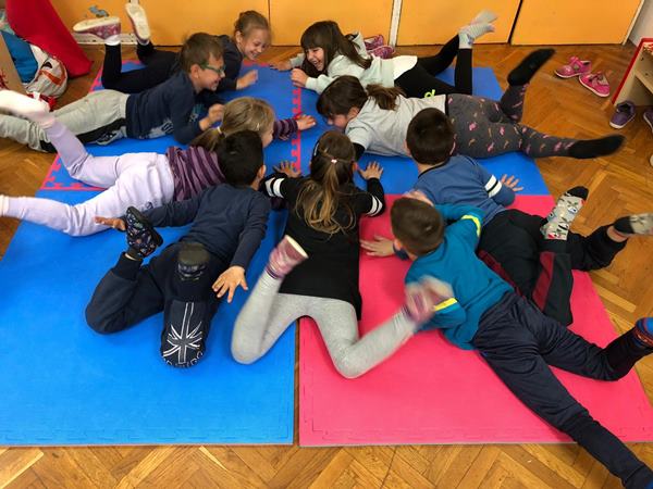 Utorak je bio dan kada smo pričali o važnosti tjelesne aktivnosti i kretanja u svakodnevnom životu. Odgajatelji su na kreativan način poticali djecu na vježbanje i kretanje, tako da su na dvorištu postavljali kolute u red u koje djeca moraju uskakati s jednom ili dvije noge, ovisno o broju postavljenih koluta. Proveli smo i aktivnost Skok u dalj. Aktivnost započinje u sobi dnevnog boravka, gdje svako dijete ima vlastitu naljepnicu kojom označuje duljinu skoka, zatim metrom mjerimo rezultate. Djeca su na dvorištu oponašala kretanje životinja, te kroz taj način igre su provodili tjelovježbu. Također, djeca su se educirala o ljudskom tijelu kroz puzzle dječaka i djevojčice, te su nakon toga slikali ljudsko tijelo u stvarnoj veličini na kartonu.
